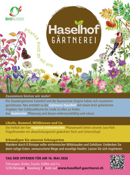 Hinter dem Haselhof stehen Konrad Hilpert und Christian Siegrist. Konrad hat viele Jahre die Staudengärtnerei Eulenhof in Möhlin geführt,